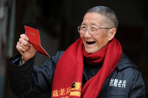 2015年“9.3”前夕,抗战老兵相聚庆祝抗战胜利70周年。